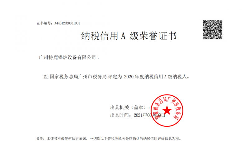 納稅信用A級證書