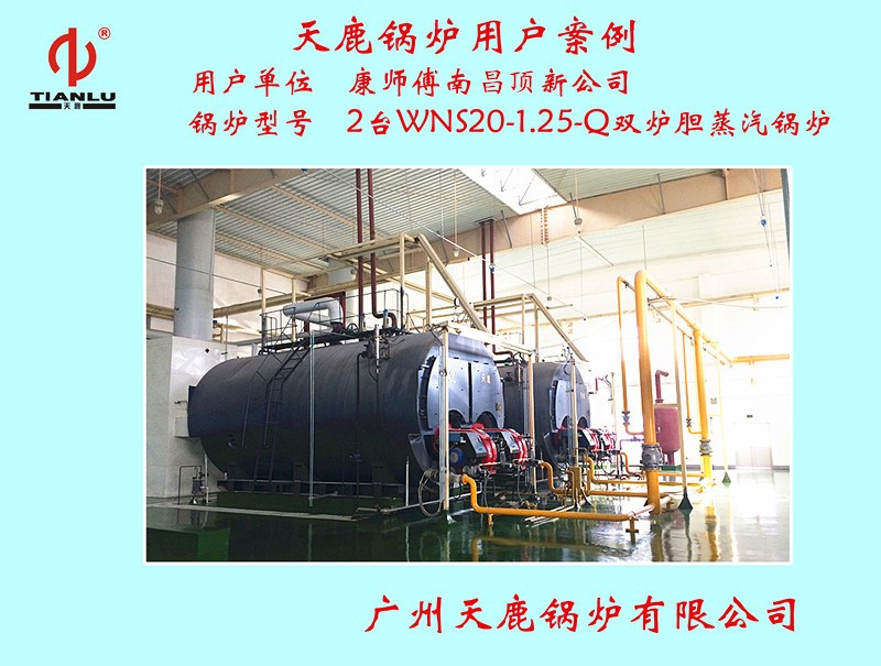 康師傅南唱頂新公司2臺WNS20-1.25-Q雙爐膽蒸汽鍋爐